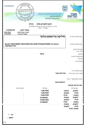 סיליקה החלקה טיפולית ללא פורמלין מכילה מינרל הסיליקה החיוני לחיזוק ותמיכה בשלמות סיב השיערה, מונע שבירה ויובש ומעניק לשיער רכות וברק למראה מושלם.