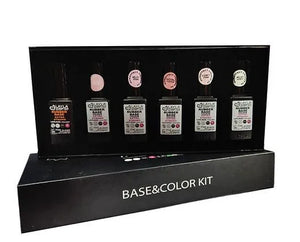 Contents: Rubber base, Color bases: Milky Pinky, Natural Cover, Milky Gray, Flash Blush, and Comfy Pink