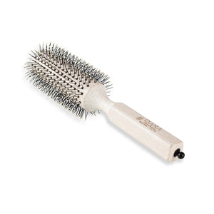 The QARNETTE Finish White Facial Brush, with nylon bristles and nipples, made in Italy, offers a professional solution for perfect facial styling and finishing. The brush is equipped with a white wooden handle, which provides a comfortable and stable grip that does not slip, along with a dividing thorn for maximum styling comfort.