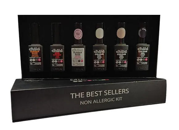 מארז לטיפול בלקוחות אלרגיות - מוצר חובה בכל מכון יופי! בסיס גומי , בסיס עם צבע, 3 גוונים נדירים וטופ ללא נטרול שכולם ללא אקריל חומצי!