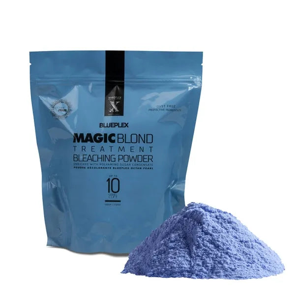 אבקת הבהרה BLUEplex ייחודית מסידרת אוקטן פנינים וקראטין, אבקת הבהרה מיוחדת במינה ללא אבק עם פיגמנטים כחולים ורכיבי הגנה לשיער מועשרת ברכיבי Polyamino Sugar Condensate שנותנת את אפקט ה PLEX, חודרת לסיב השיערה בזמן פעולת ההבהרה מטפחת אותה ומשאירה אותה רכה וגמישה, מתאימה לכל שיטה ולכל טכניקת הבהרת שיער ביחס של 1:2. מבהירה 10 טונים. מועשרת בפיגמנט כחול מיוחד שמנקה את הפיגמנטים הכתומים והצהובים ומשאיר את צבע הבלונד בהיר ובריא.