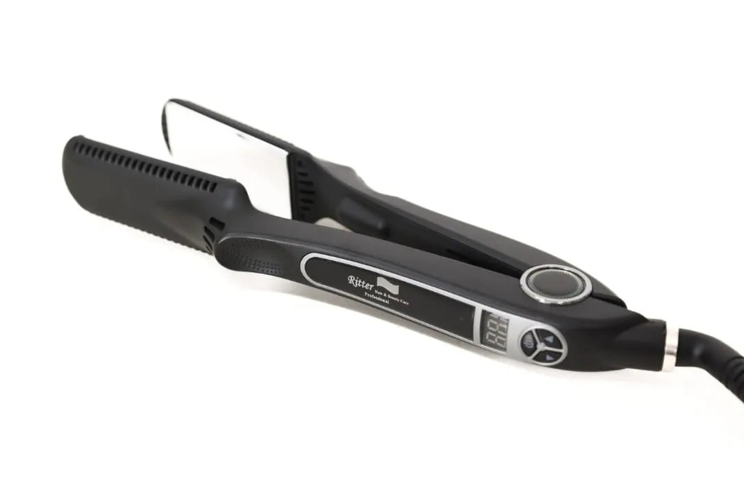 Профессиональный, высококачественный титановый выпрямитель для волос от Ritter, достигающий температуры 230 °C, подходящий для всех видов укладок и разглаживания.
